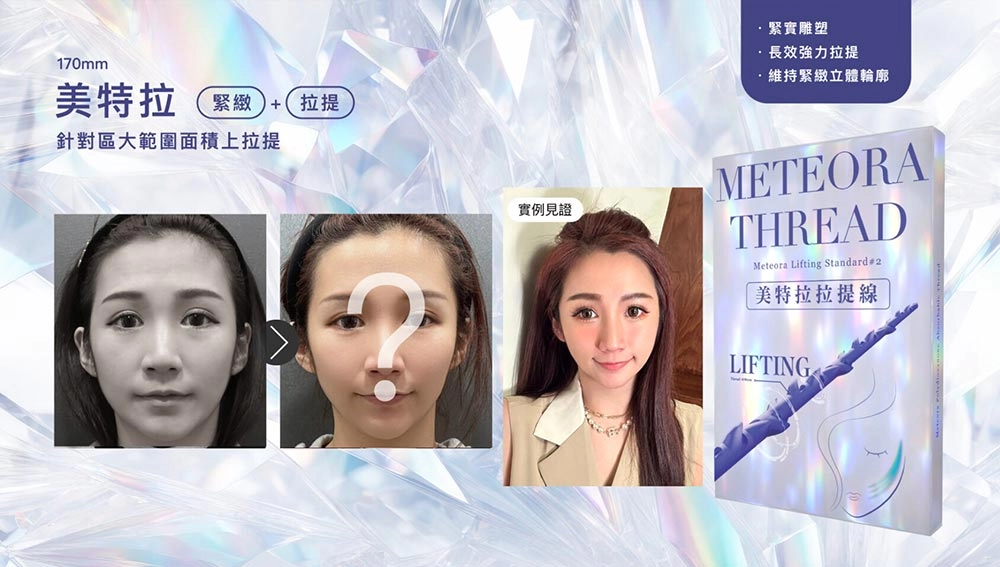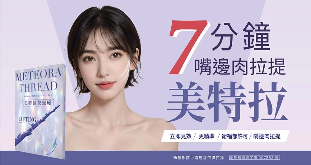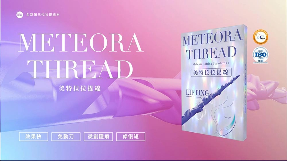 埋線拉提又稱線雕拉提,而Meteora Thread美特拉是一種埋線手術的線材,通過肌膚皮下組織,進行淺筋膜的拉提,以及刺激膠原蛋白的增生,第三代「美特拉」,延續美特拉線材長效拉提的效果,另外增加極細外導管,在微創拉提的過程中更快速、佈線精準,只要七分鐘,有感改善臉部輪廓線、告別鬆弛肌膚、法令紋、木偶紋與鼻雕!