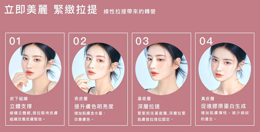 埋線拉提又稱埋線拉皮、線雕微整,屬於微侵入式的拉提(拉皮)療程,埋線拉提是將醫療級線材,通過肌膚皮下組織,進行淺筋膜的拉提,進而刺激膠原蛋白的增生,達到皮下組織的支撐與拉提的效果,有別於電音波拉提需要等待三~六個月的效果顯現,埋線拉提的效果可立即看見!