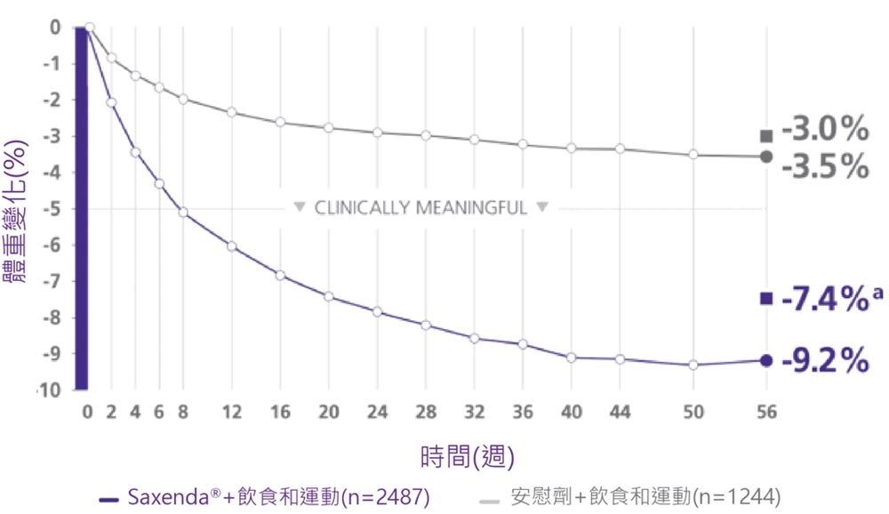 - 患者體重平均減輕9.2%並可有效維持一年以上