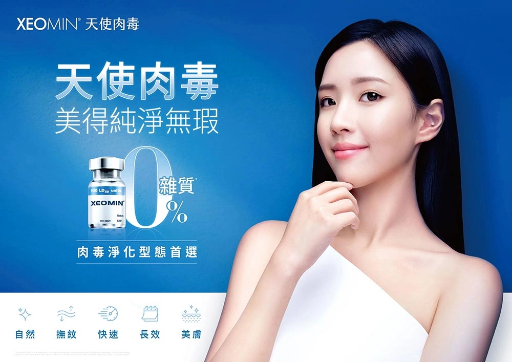 來自德國的「天使肉毒」Xeomin®(淨優明),是全球唯一純淨萃取、不含複合性蛋白的A型肉毒桿菌素產品,能減少免疫反應與抗體產生的風險,避免反覆施打而效果逐漸遞減或治療無效的情況發生。適合用於改善各種動態皺紋或放鬆肌肉,使線條平滑緊緻、肌膚散發純淨光采。
