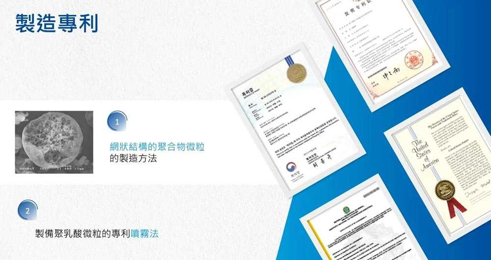「聚雙旋乳酸PDLLA」是聚乳酸(PLA, Polylactic Acid)的同分異構物,擁有高生物相容性的特點,同時PLA也是美國FDA公認核可的聚合物,因此許多人體相關植入物(如手術縫線、人工血管、手術網片)也都是使用PLA成分。