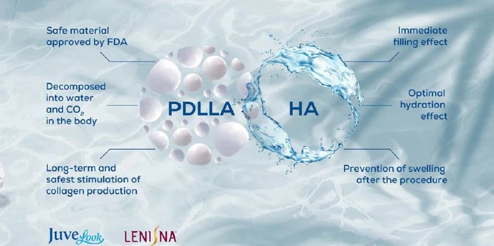 根據臨床實證,聚雙旋乳酸PDLLA注射於人體後56週以上即觀察不到明顯免疫反應,且經72週後可被完全降解,不須擔心會殘留。玻尿酸為人體中天然存在的保濕成分,兩者的組合使療程更加安全可靠。 - 效果自然持久